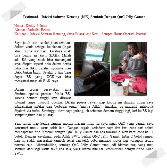 Testimoni Jelly Gamat QnC Untuk Batu Kandung Kemih