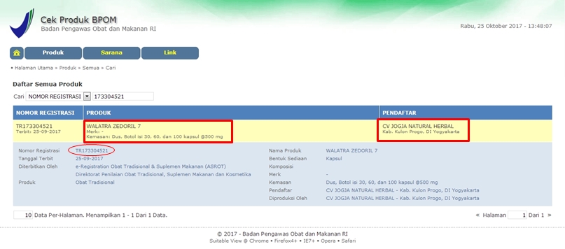 Terdaftar Di BPOM dengan nomor registrasi POM TR173304521 dan Bersertifikat HALAL Oleh MUI Indonesia.