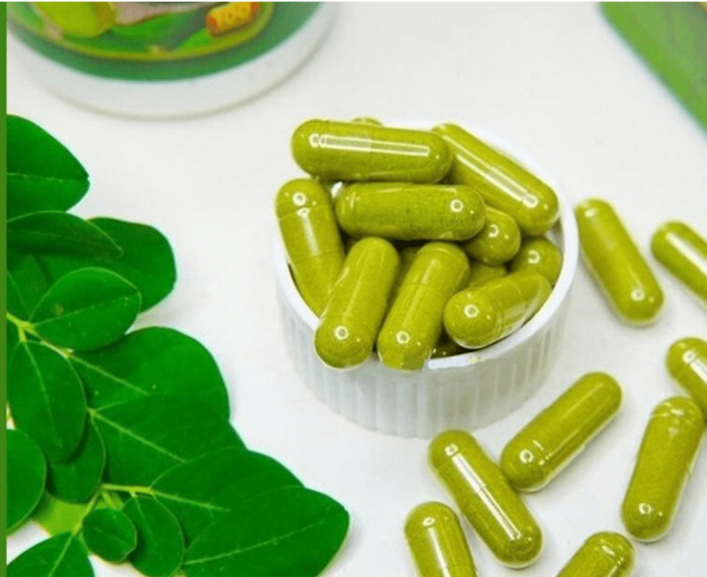 Ekstrak Daun kelor mengandung Protein, Vitamin B6, Vitamin C, Zat Besi, Riboflavin (B2), Vitamin A, Dan Magnesium.