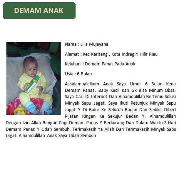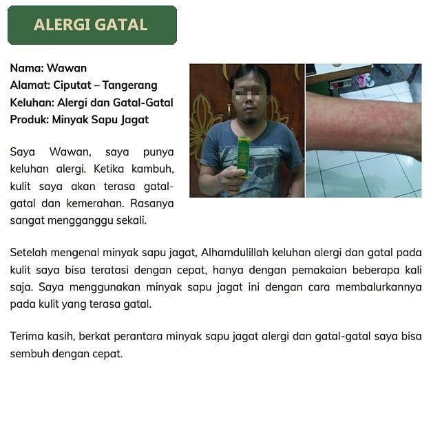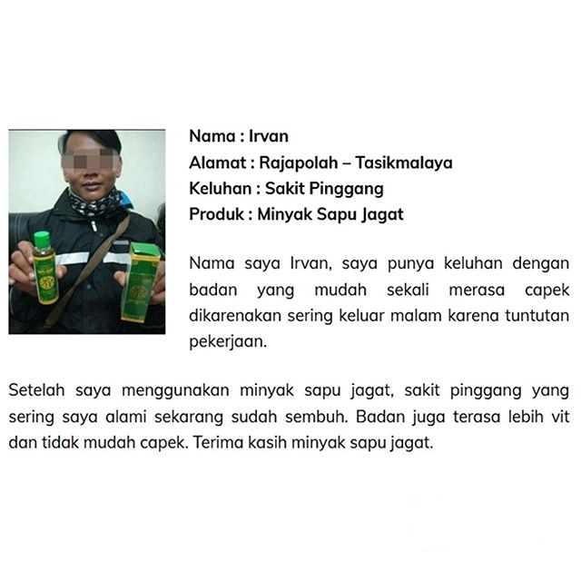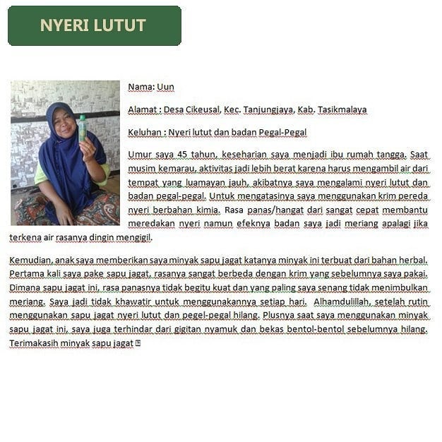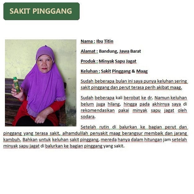 Berikut beberapa testimoni dari beberapa pengguna Minyak Sapu Jagat :