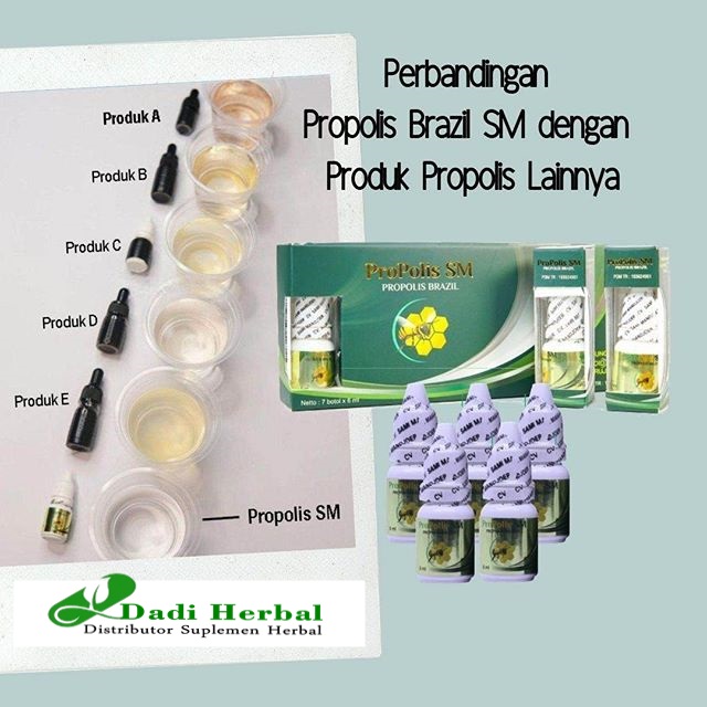 Propolis SM – Propolis Brazil terbuat dari 100% Propolis Brazilian yang diolah dengan menggunakan NANO TECHNOLOGY pertama dan satu-satunya di Indonesia sehingga menjadikan produk ini lebih baik dari produk Propolis lainnya. Karena propolis yang beredar di pasaran biasanya hanya mengandung 5% – 9% propolis brazil, propolis trigona 90% dan 1% zat kimia berbahaya.