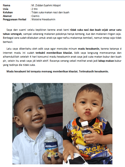 TESTIMONI WALATRA HEXABUMIN ASLI