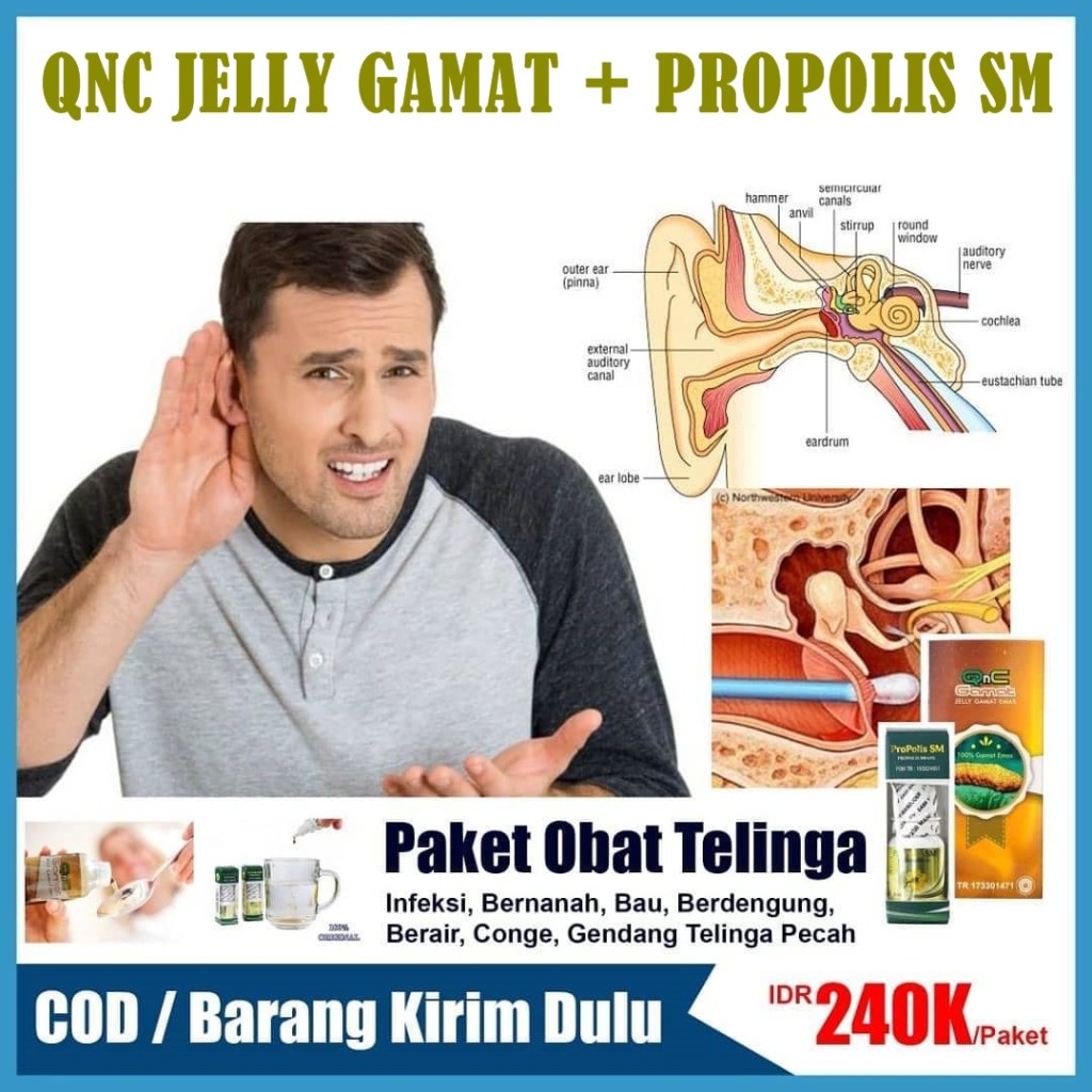 QnC Jelly Gamat Emas – Dapat Membantu Penyembuhan Telinga Berdengung, Telinga Congek, Telinga Budek ( Budeg ) Atau Curek, Dan Telinga Bernanah, Telinga Berair, Dan Bau Sampai Normal Kembali 100% Tanpa Operasi Alami Terbukti Efektif Dan Terbukti Testimoni Tanpa Menimbulkan Efek Samping.